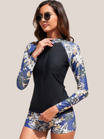 Bescherm jezelf tegen de zon met de lange mouwen van dit flatterende tweedelige badpak . De top beschermt je tegen UV-straling, maar ook tegen koud water tijdens het zwemmen. De onderkant van het badpak benadrukt je vorm voor een mooi silhouet.